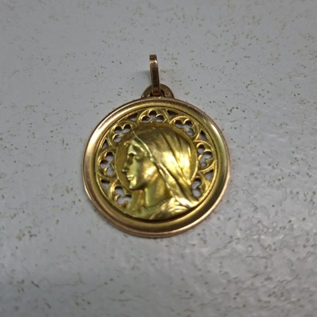 / Médaille Vierge ronde ajourée or jaune 18 carats