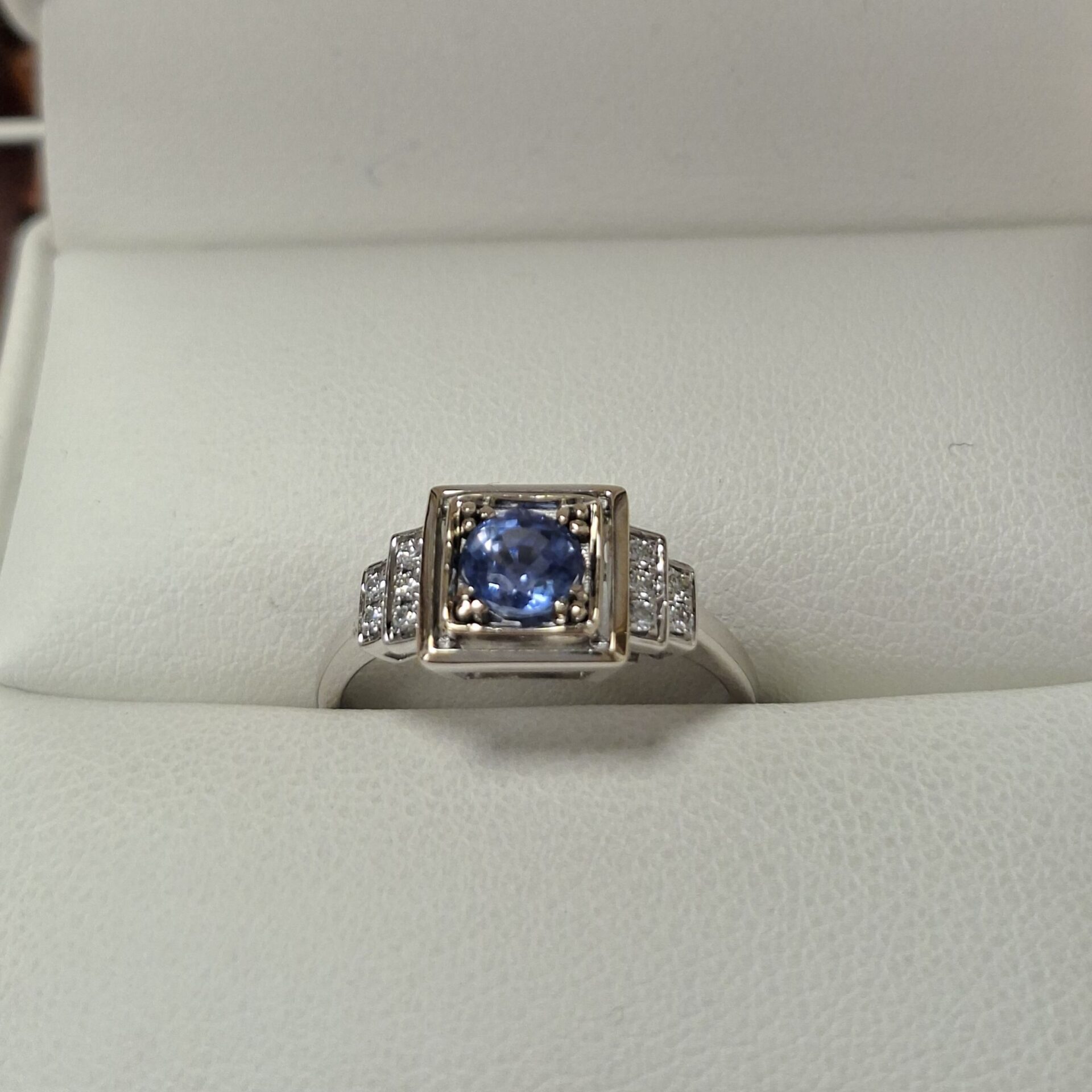 Bague or gris saphir diamants
