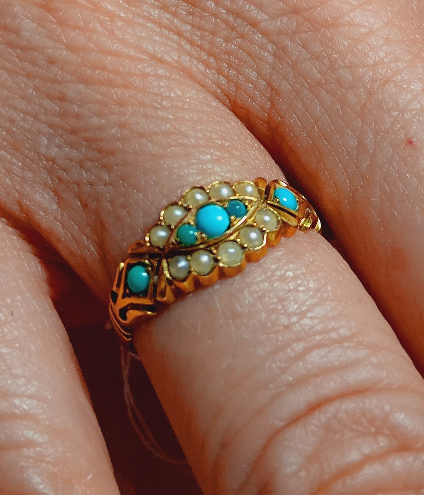 Bague or jaune turquoises demi-perles