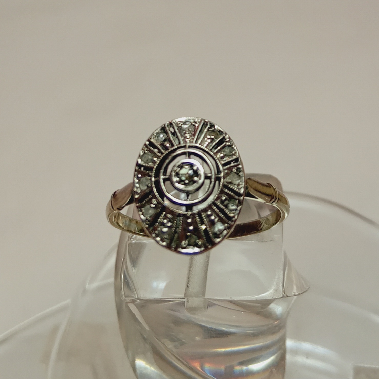 Bague ovale 1930 or gris diamants