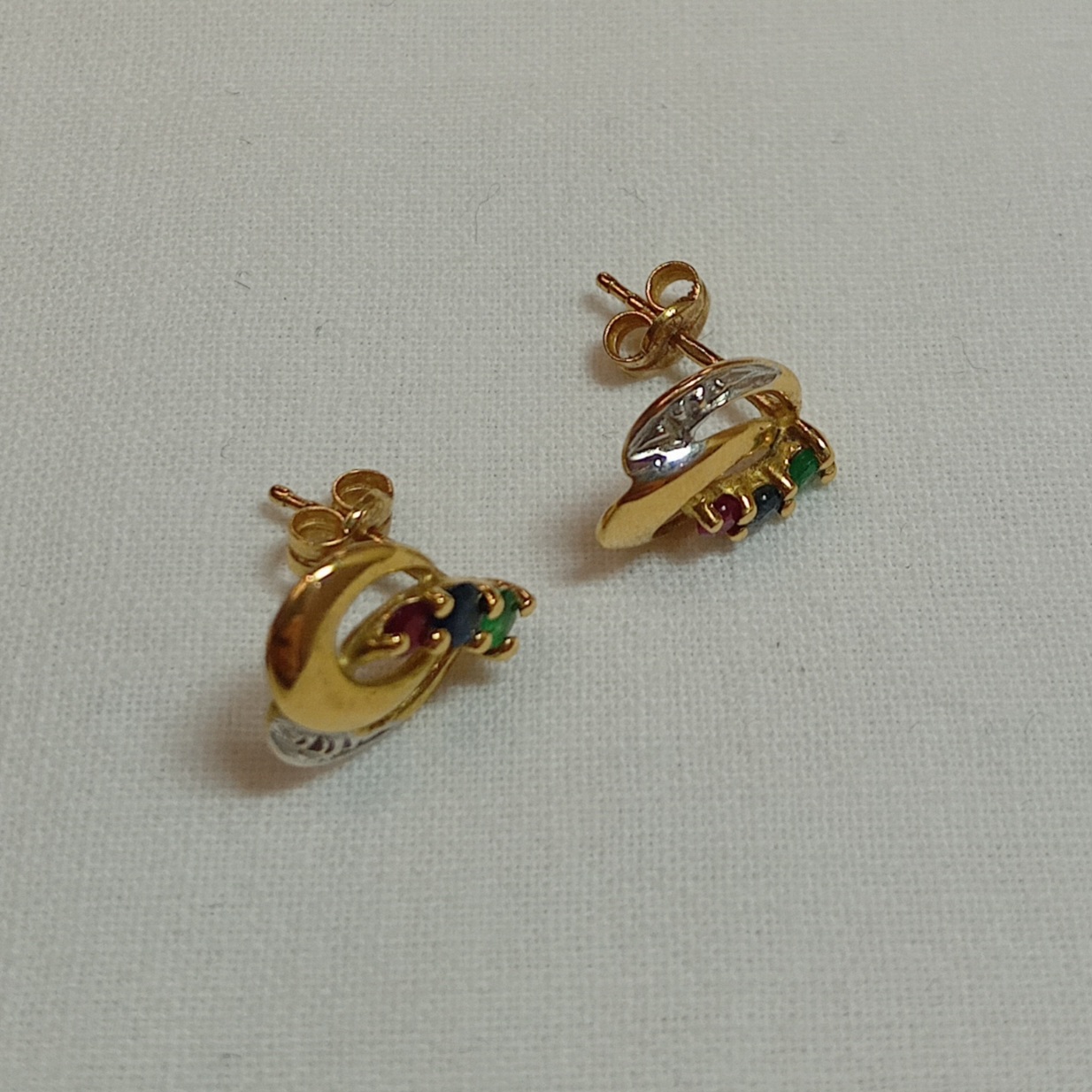 Boucles d’oreille 2 ors rubis saphir émeraude