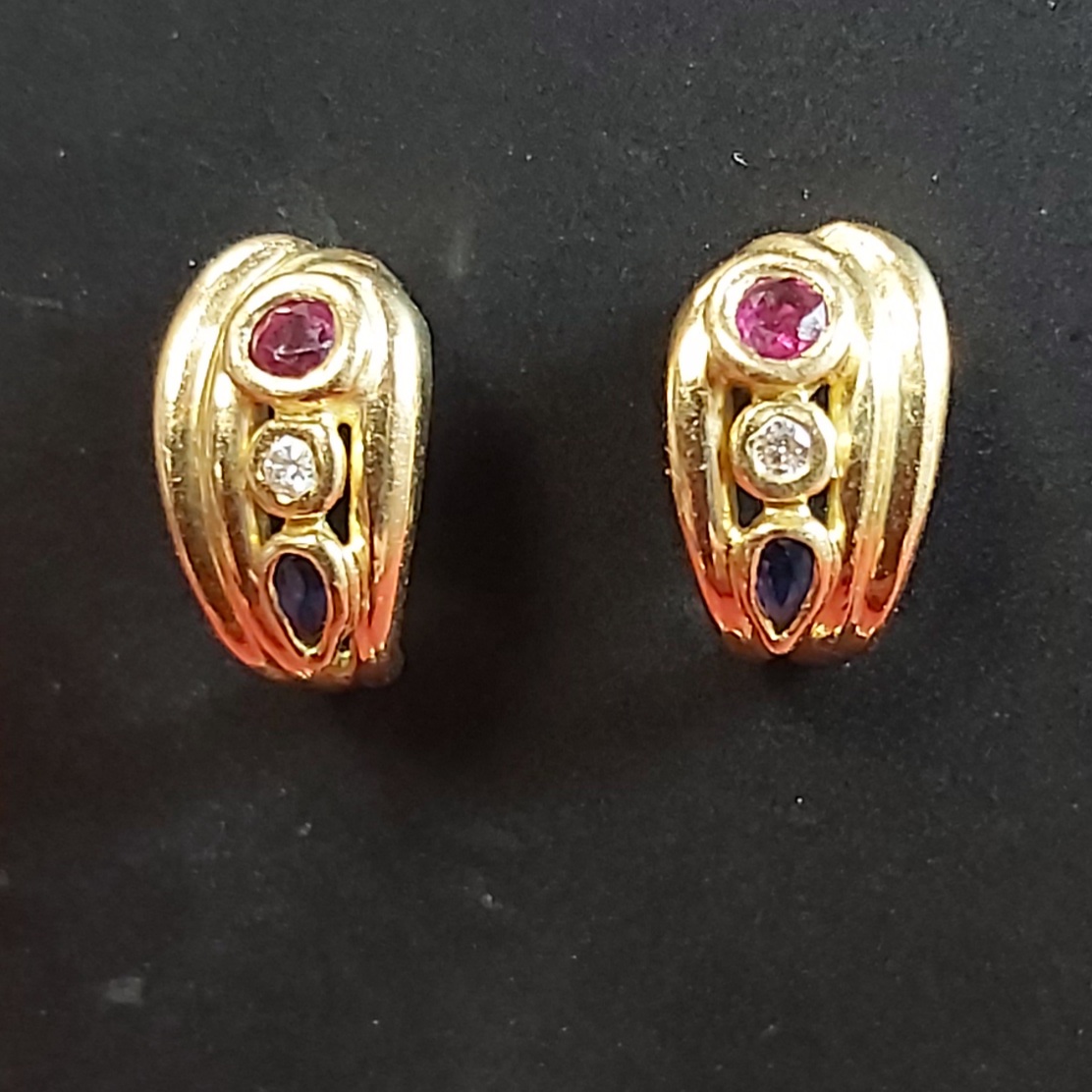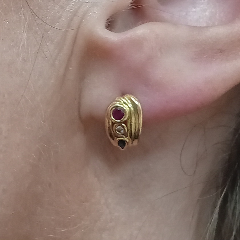 Boucles d’oreille or, rubis, diamants, saphirs