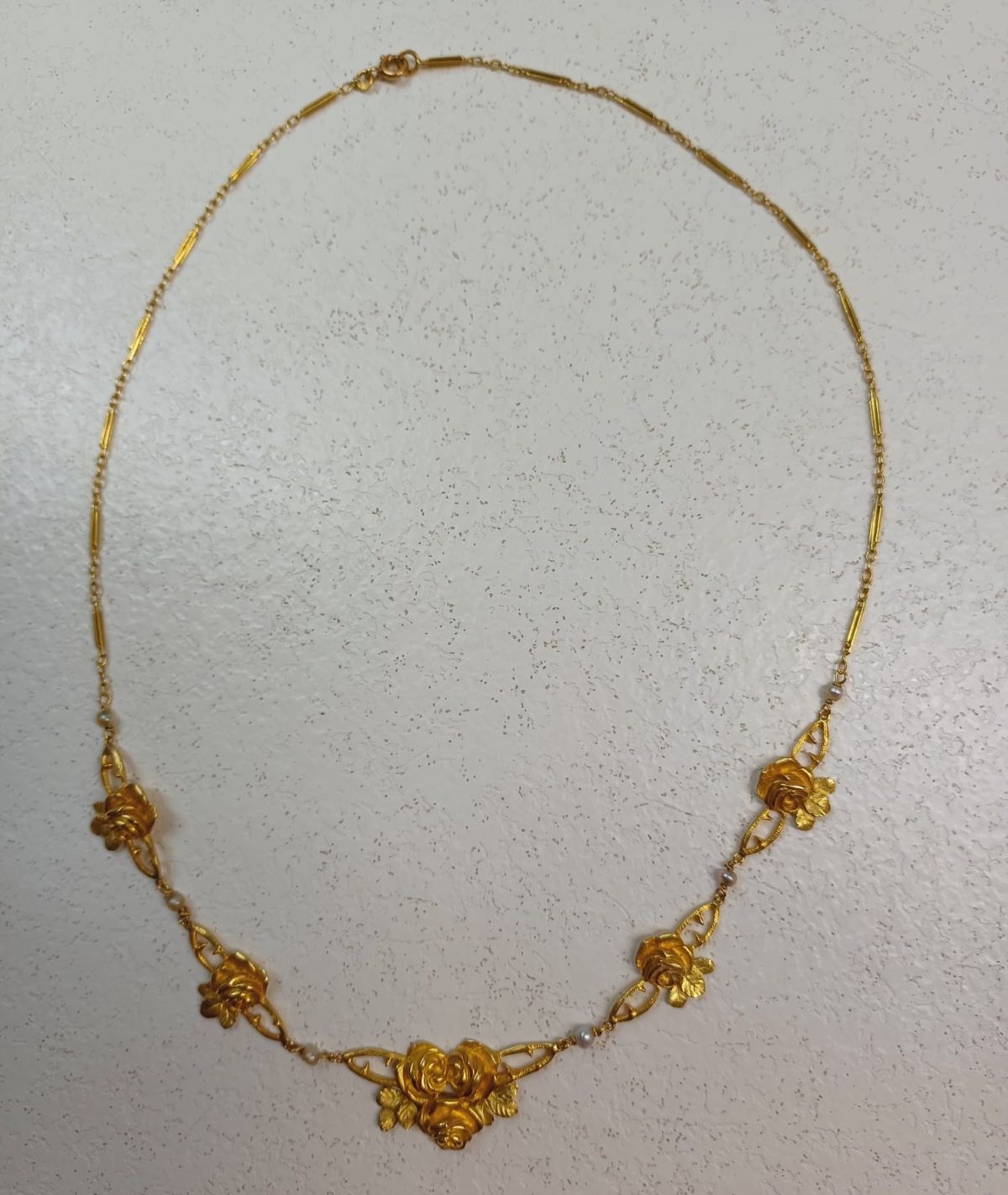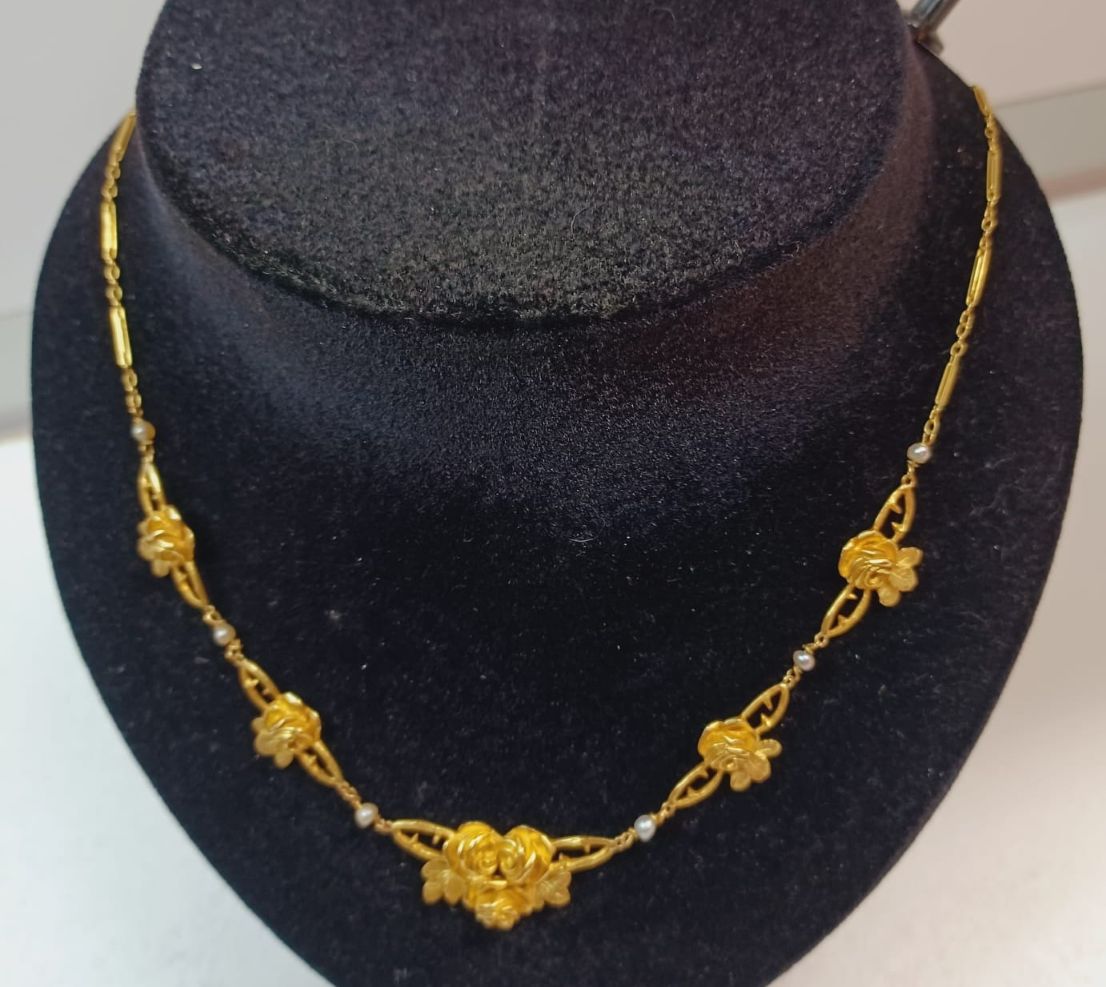 Collier draperie roses or jaune 18 carats
