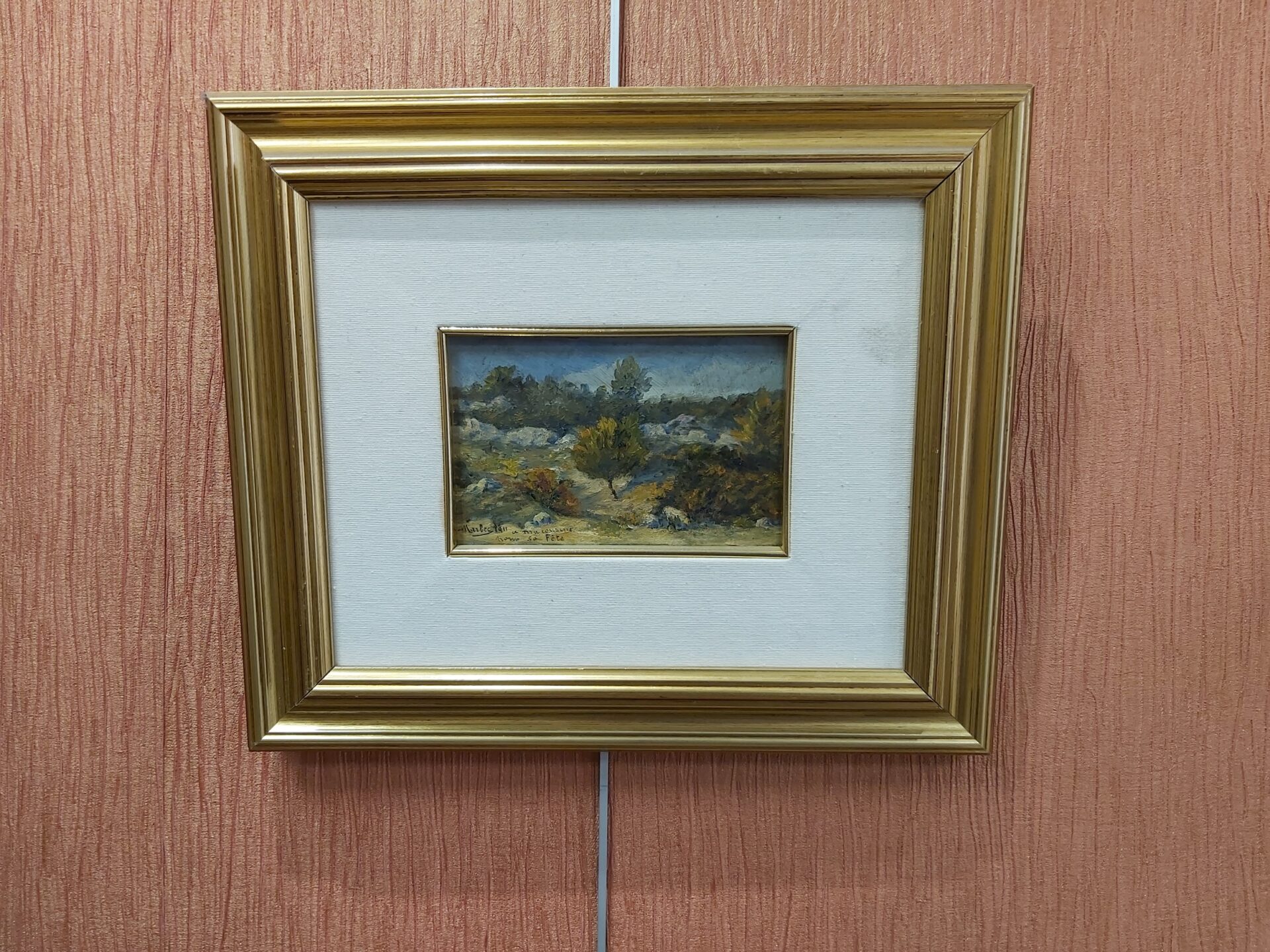 Huile sur carton encadrée, paysage, Marbec, 1911