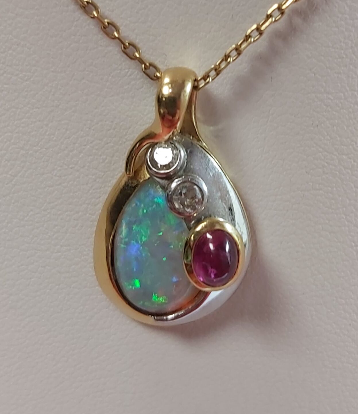 Pendentif 2 ors opale rubis diamants